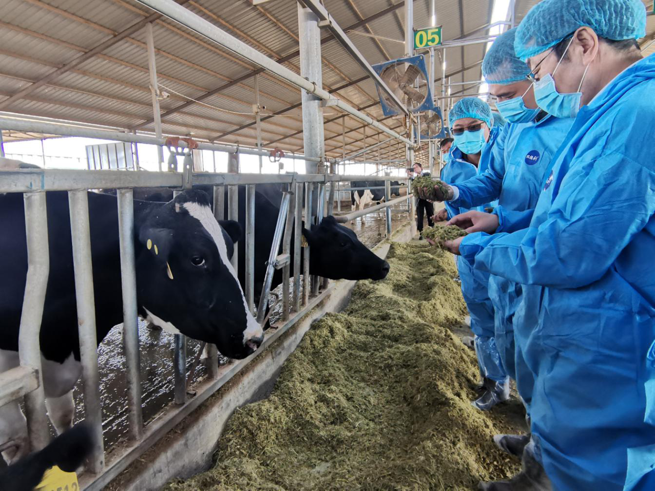10月4日杨国龙副市长、郭少元局长、姚军虎教授、靳亚平教授、姜雨教授、李建喜研究员、韩博教授、王勇胜教授研究员和马云教授等一行20余人在各企业负责人的带领下先后参观了宁夏兴源达农牧有限公司、宁夏新澳农牧有限公司、宁夏农垦集团贺兰山奶业、宁夏澳牧进口种畜有限公司、宁夏鑫旺达农牧有限公司、同心农业综合开发有限公司、宁夏华澳牧业有限公司和宁羴源牛羊肉有限公司。宁夏兴源达农牧有限公司现存栏澳洲奶牛3050头,成母牛1764头,成母牛比例达57%,泌乳牛日均单产37公斤/天,日产鲜奶50吨,交售蒙牛集团,年产值6450万元,利润928万元。宁夏新澳农牧有限公司现存栏澳大利亚优质荷斯坦奶牛4200头牛(其中:挤奶牛1800头),头均单产达到35公斤,日产鲜奶70吨。预计12月份日产鲜奶90吨,年产30000吨以上,年实现产值1.2亿元以上。宁夏农垦集团贺兰山奶业现存栏奶牛4000头,预计2020年底实现存栏8000头。满负荷投产后预计年产鲜奶7.3万吨,实现经济效益2.78亿元,利润约3000万元。同时,带动当地就业岗位约80人。宁夏澳牧进口种畜有限公司建于2020年4月,占地面积287.9亩,主要从事种畜禽的进出口和隔离等业务。宁夏鑫旺达农牧有限公司立于2019年7月,注册资金1000万元,总占地133亩,推行“公司+合作社+农户”的经营模式。同心农业综合开发有限公司成立于2014年3月,注册资金600万元。主要从事玉米青贮(黄贮)、苜蓿等优质饲草种植、制作加工销售及配送等工作,目前,公司作业面积达3.5万亩,其中:流转土地种植苜蓿1.15万亩,种植水稻0.35万亩,与周边种植大户签订玉米青贮生产订单2万亩。宁夏华澳牧业有限公司成立于2019年4月,已投资5000万元,存栏奶牛2000头,日产鲜奶35吨,所产鲜奶已与蒙牛乳业签订长期供销合同。宁羴源牛羊肉有限公司现存栏羊只3800只,建设完成后年可向市场提供优质肉羊4万只,公司采用“互联网+羊产业”运营模式,建设旗舰店、电商运营公司和宁夏特产展销公司,年销售牛羊制品及宁夏特产1200吨。参观期间中国农业大学韩博教授对宁夏兴源达农牧有限公司患有乳房炎的病牛现场进行检查,并给出合理的解决方案。