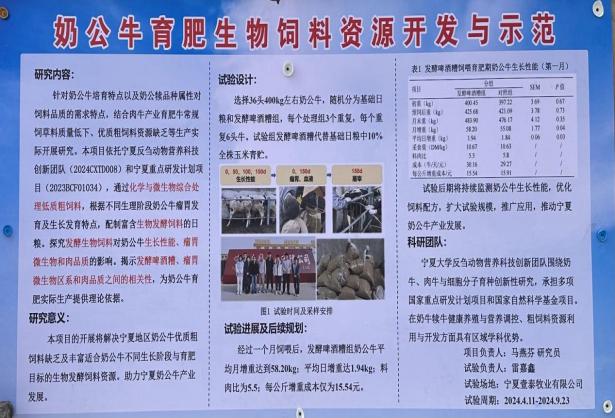 为进一步提升我区奶公牛优质化生产育肥技术水平,改善奶公牛肉品质,实现优质优价,并示范带动奶公牛产业节本增效、提质增效、营销增效、突破产业发展瓶颈、完善奶公牛养殖育肥体系、实现奶业-肉牛产业无缝对接。2024年3月-8月,在宁夏回族自治区重点研发计划项目(2023BCF01034)和宁夏反刍动物营养科技创新团队项目(2024CXTD008)资助下,项目负责人马燕芬研究员和子课题负责人李胜利教授(中国农业大学)、瞿明仁教授(江西农业大学)组成的科研团队在宁夏壹泰牧业有限责任公司开展奶公牛育肥关键技术研究及示范应用。