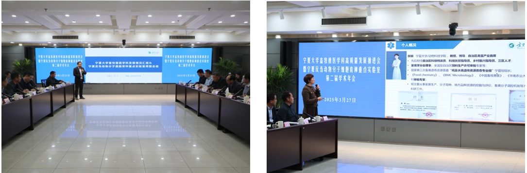 ag百家乐 副院长(主持工作)、自治区反刍动物分子细胞育种重点实验室主任马云教授详细介绍了畜牧兽医学科及重点实验室的建设进展与未来工作规划。ag百家乐 教师、自治区蛋禽产业技术体系首席专家张娟教授围绕宁夏家禽产业科技创新工作进展作专题报告,汇报了家禽产业的科技创新工作进展。