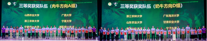本届大赛经典专向共设置一等奖8项、二等奖24项、三等奖48项。经过4天的激烈角逐,我校代表队展现出扎实的专业素养和出色的实践技能。在老师的指导下,参赛队伍历时3个月的准备,反复研讨、辩论和模拟演练,最终在决赛中经理论考核、定向操作、牧场评估及答辩汇报等多个环节的严格考核,成功夺得本次挑战赛的肉牛、奶牛组团体“三等奖”。