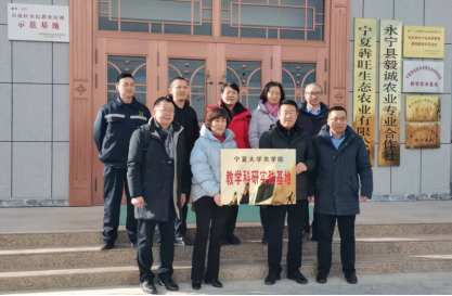 农学院产学研合作基地揭牌仪式在宁夏犇旺生态农业有限公司举行。宁夏犇旺生态农业有限公司负责人王瑞刚、场长姜武,宁夏大学农学院王建宇副院长,宁夏反刍动物分子细胞育种实验室主任马云教授、重点实验室许立华教授、张巧娥教授、王玲教授、余永涛副教授、魏大为副教授、实验室科研助理杨梦丽、博士生冯雪出席揭牌仪式。