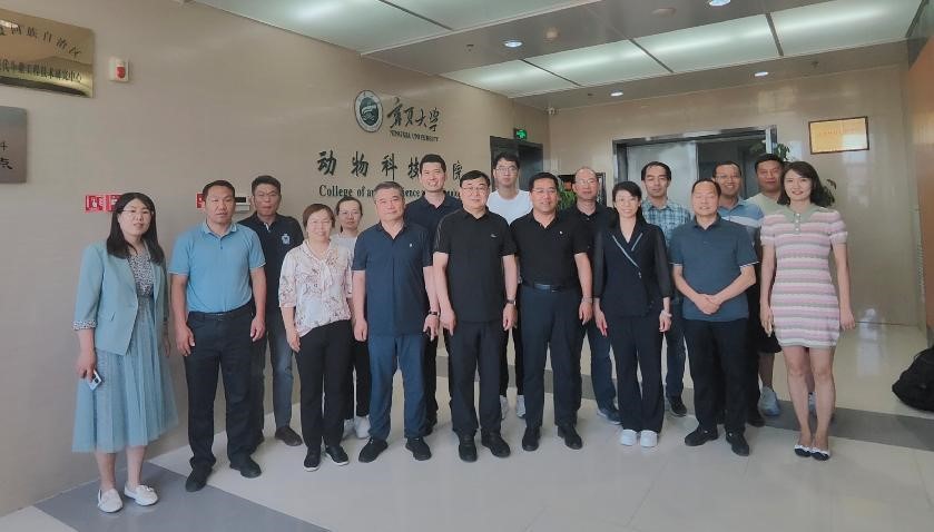 副院长马云教授、副院长徐晓锋教授、动物科学系主任王兴平教授、动物医学系主任龚振兴研究员、康晓龙教授、魏大为副教授、张红瑞博士,宁夏农垦乳业股份有限公司胡启超,宁夏壹泰牧业有限公司刘依莎等人参加会议,会议由马云教授主持。